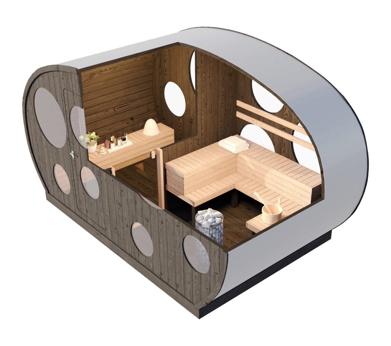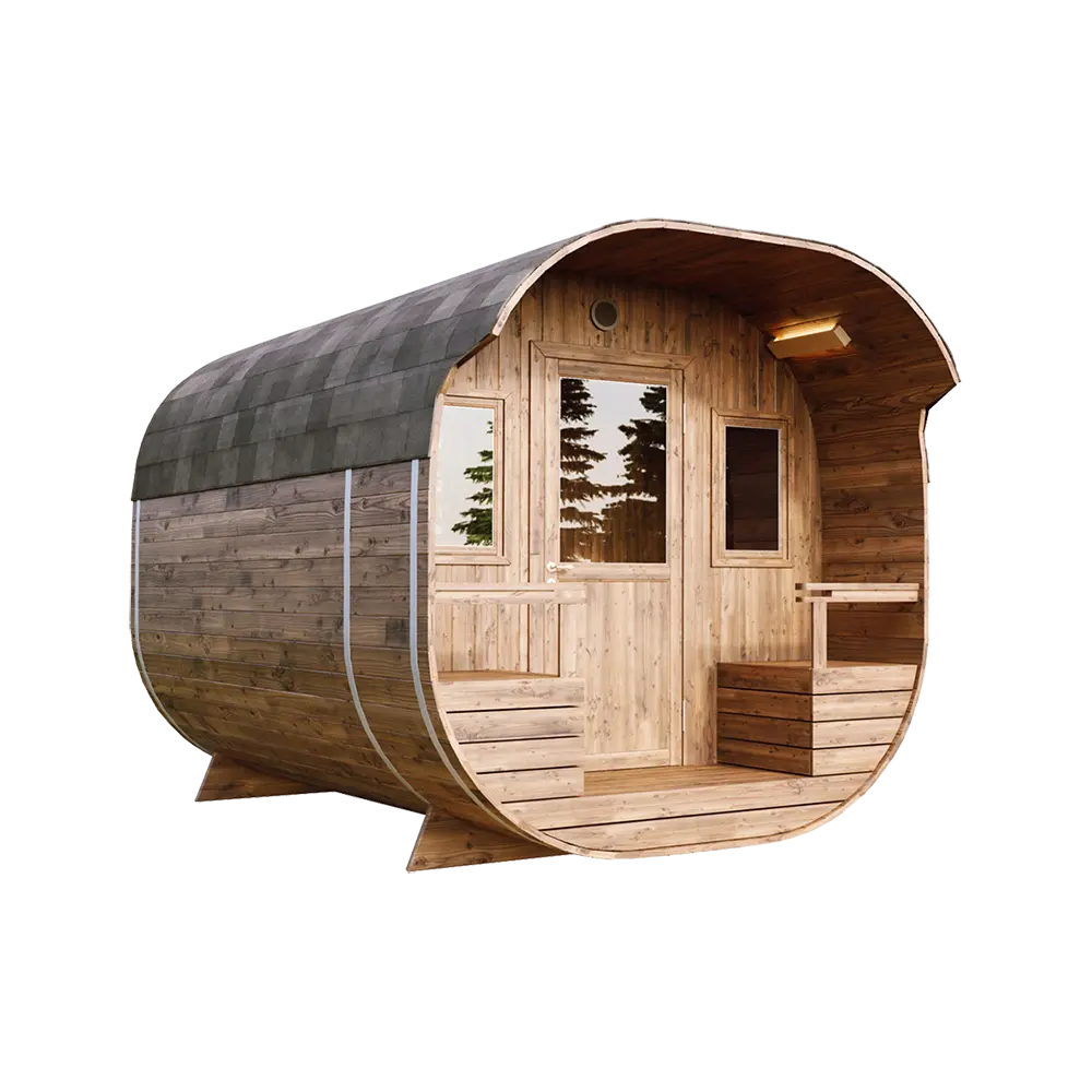 - Kõik saunad on tehtud termopuidust, mis ei mädane ega idane – see on tõeliselt kvaliteetne ning vastupidav.
